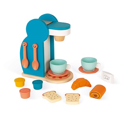 ¡Porque el desayuno es importante, este hermoso set es ideal! Tus hijos podrán preparar el desayuno introduciendo la cápsula en la cafetera, eligiendo la cantidad de café con el botón giratorio y sonoro, ¡y listo! Azúcar para los más golosos y nada mejor que unos panecillos para acompañar el desayuno! Una cafetera y sus 14 accesorios incluidos.