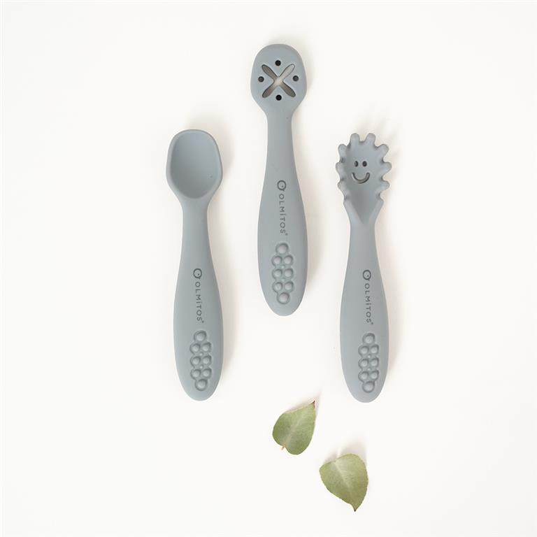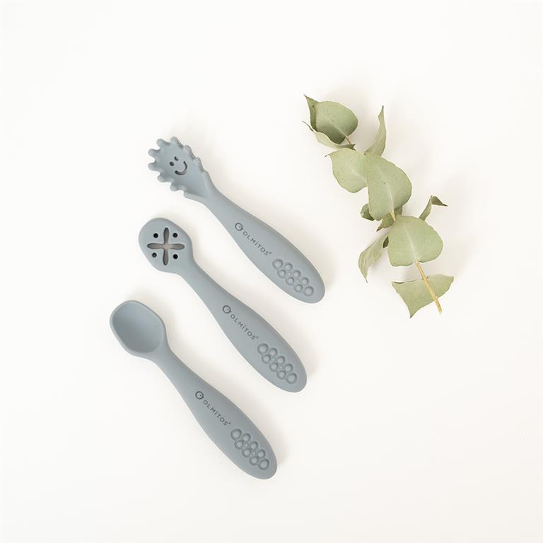 Conjunto de talheres de aprendizagem em silicone de alta qualidade, com design ergonómico e pontas suaves para promover a autonomia do seu bebé durante as refeições. Os talheres de aprendizagem ajudam a controlar o movimento da mão-boca
