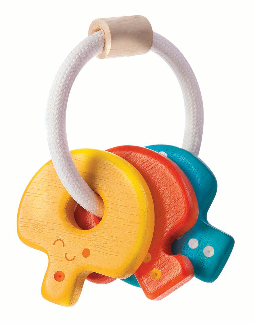 Brilhante e colorida, esta roca de chaves melhora as capacidades motoras finas enquanto o bebé se diverte a abaná-las. Estas chaves são fáceis de agarrar para as mãos pequeninas dos bebés.