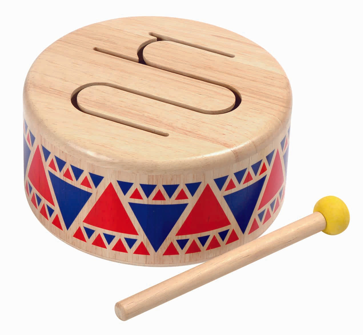 El tambor y la baqueta de Plan Toys ayudarán a desarrollar la percepción espacial, los músculos de los brazos y los nervios auditivos de los niños. La baqueta tiene una punta de goma para suavizar el sonido.