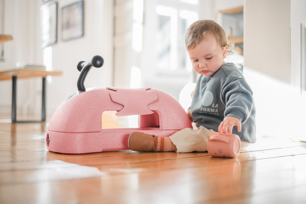 1º um andarilho, uma vez que, a partir dos 6 meses de idade podem começar a usar o My First sem rodas. Podem subir, levantar-se e deslocar-se, graças às almofadas de deslizamento integradas, o My First oferece estabilidade durante a utilização.